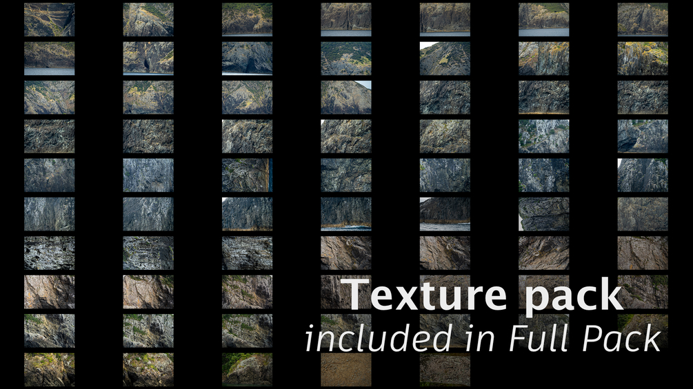 - 60+ Images focusing on large scale textures of Rocks - shot for Texturing and wrapped in a seperate package for the texture nerds ;)